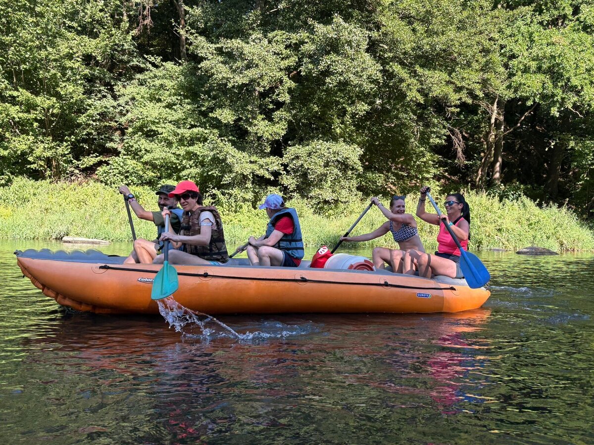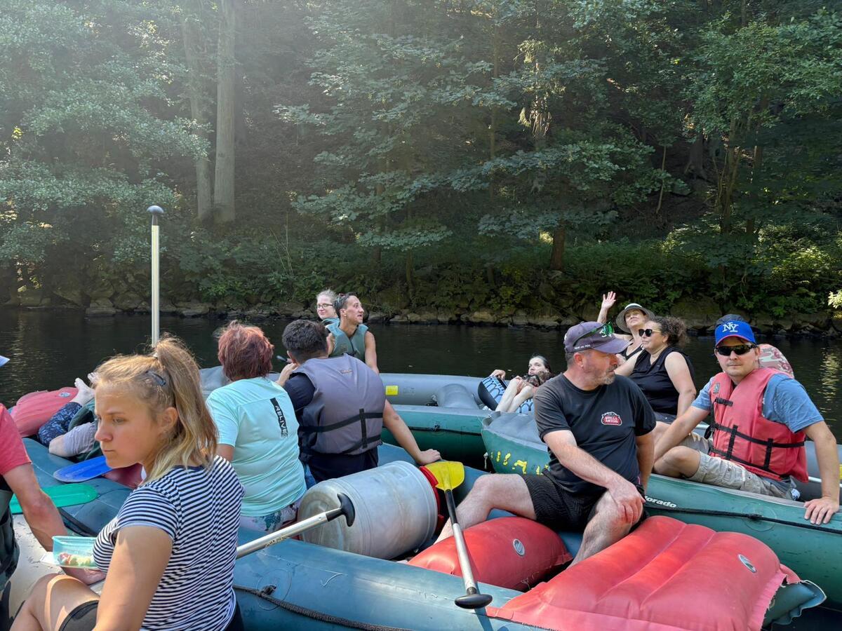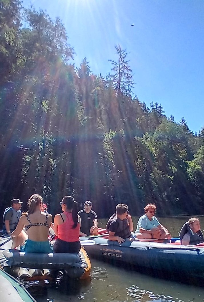 Velmi oblíbený výlet, který již podnikáme několik let s klienty Denního stacionáře a Sociálně terapeutických dílen jsou rafty. Sjíždíme řeku Ohři z Lokte do Karlových Varů. Letos jsme se opět těšili, počasí nám přálo, vypadalo, že bude i dost vody, že poplujeme, jak o život :-). Ukázalo se ale, že vody není tolik, rafty měli "dobrý" ponor a tak jsme často dřeli dnem o kameny. Klienti seděli bezpečně v raftech, my zaměstnanci jsme museli do vody a hezky rafty táhnout. Občas jsme pěkně funěli. Byl ale čas a prostor si užít krásnou přírody, zastavit se po cestě na chutný oběd na břehu a celkově si den výborně užít. Nakonec jsme ale byli všichni rádi, že jsme v cíli. Těšíme se na další rok, na další zážitkové splutí.