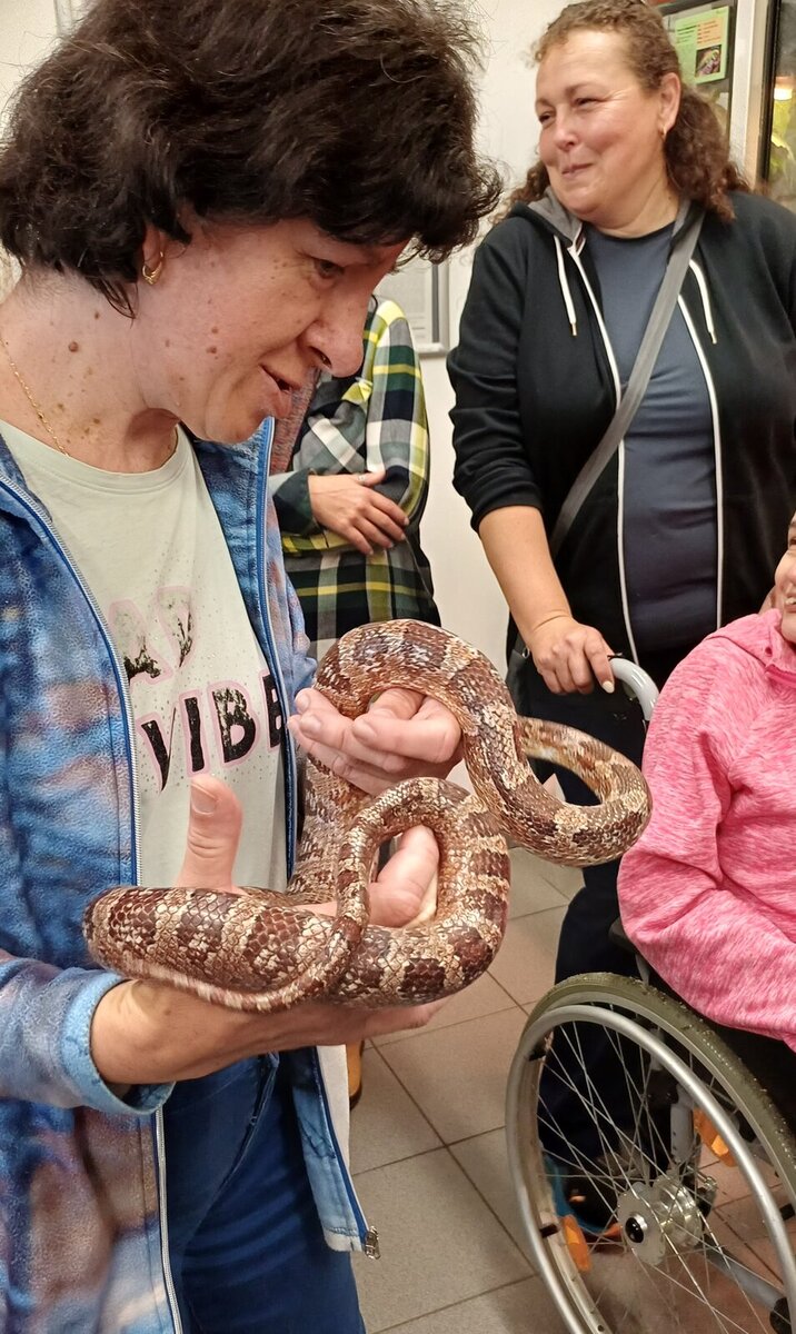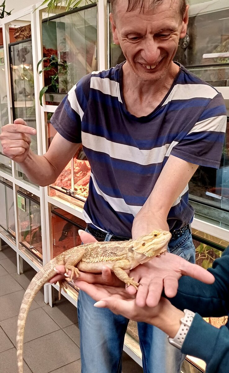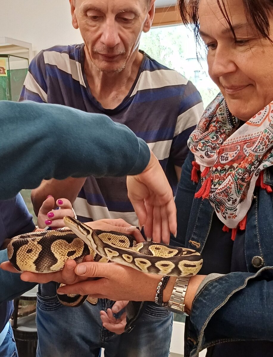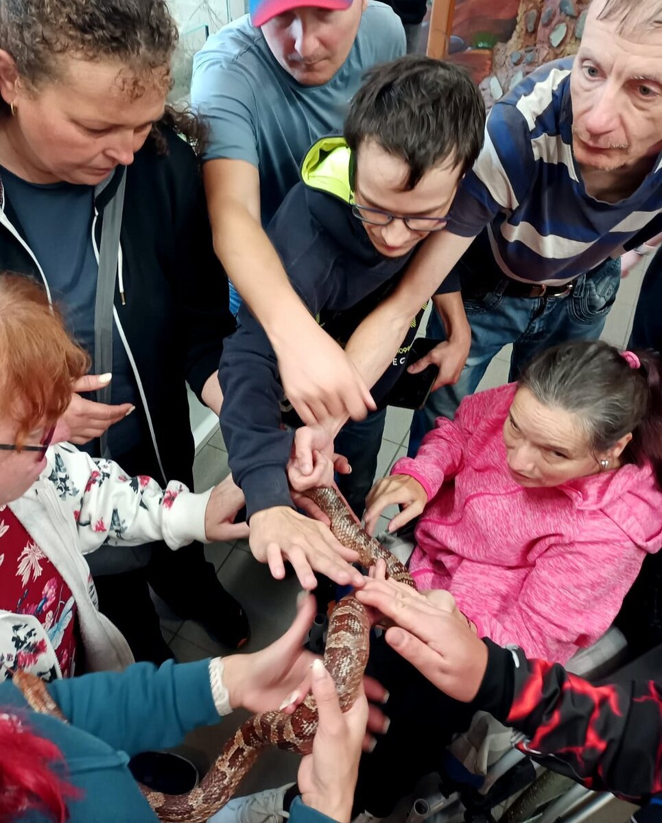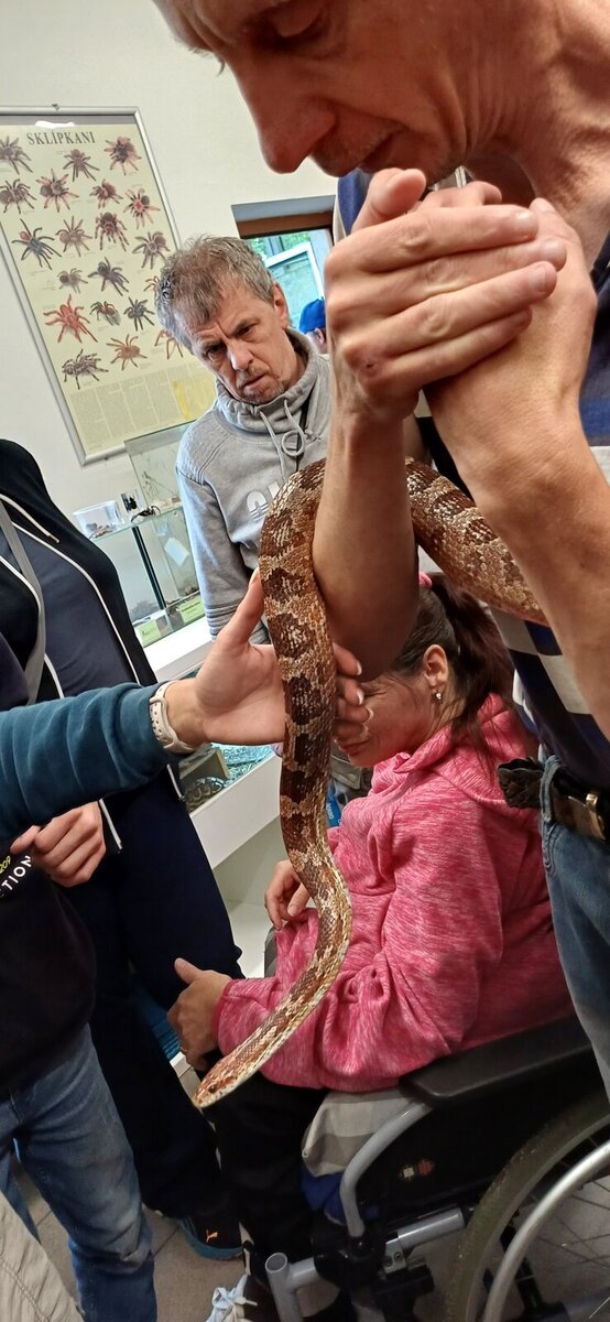 Fotografie z včerejšího výletu do nedalekého městečka Ostrova, kde jsme navštívili s klienty Denního stacionáře a Sociálně terapeutických dílen EKO Centrum. Moc jsme si užili komentovanou prohlídku s kontaktní ukázkou některých zvířat. Velký úspěch mělo "mazlení se" s užovkou a i krajtou. Taková strašilka, mnohonožka, či kůže sklípkana na ruce, byla pro nás také velkým zážitkem.