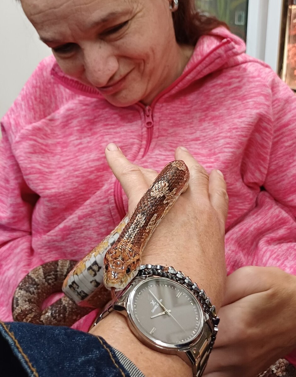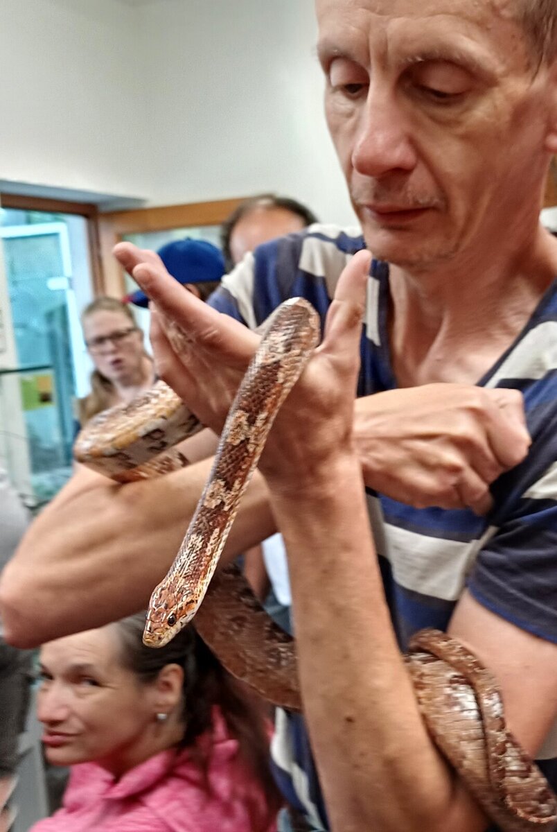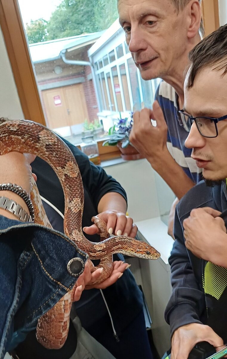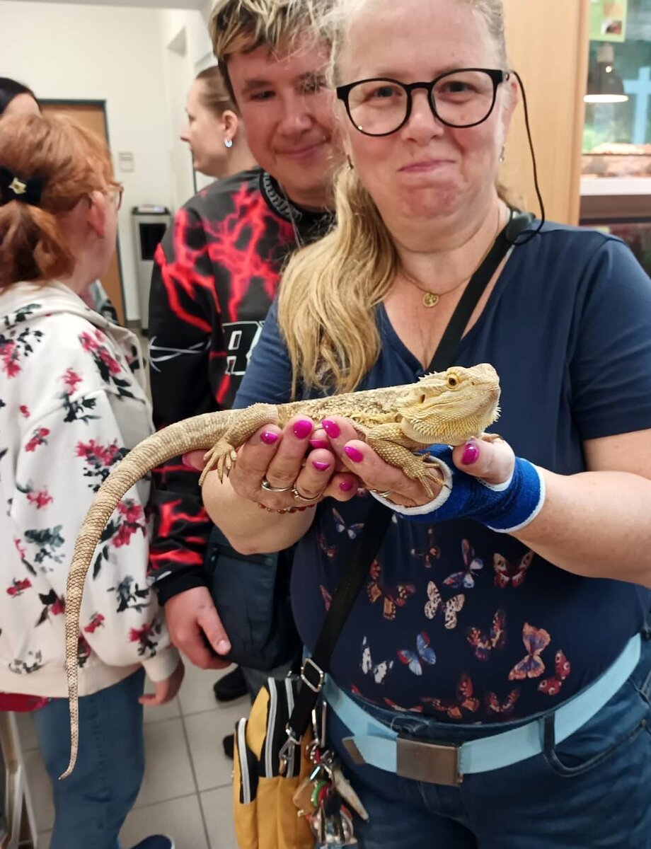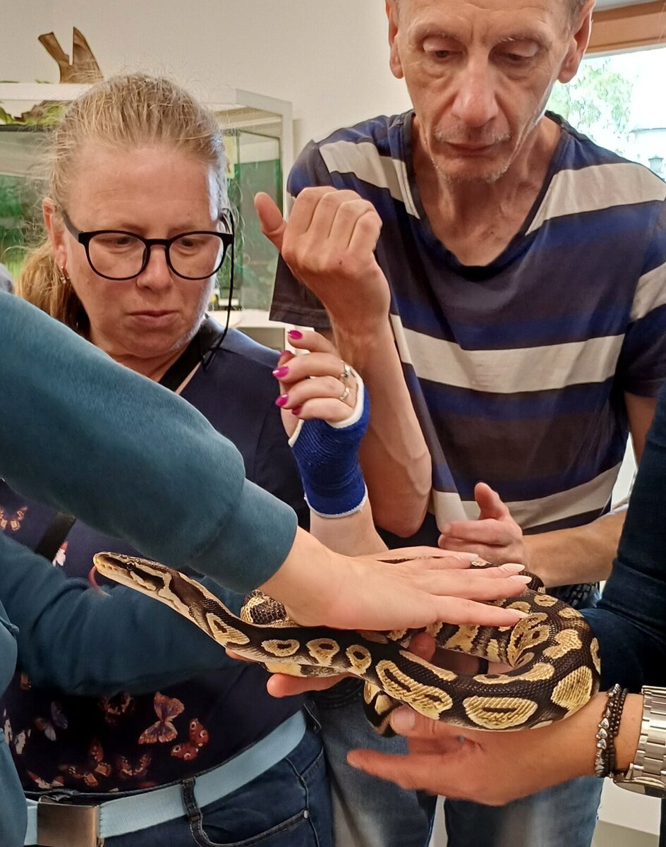 Fotografie z včerejšího výletu do nedalekého městečka Ostrova, kde jsme navštívili s klienty Denního stacionáře a Sociálně terapeutických dílen EKO Centrum. Moc jsme si užili komentovanou prohlídku s kontaktní ukázkou některých zvířat. Velký úspěch mělo "mazlení se" s užovkou a i krajtou. Taková strašilka, mnohonožka, či kůže sklípkana na ruce, byla pro nás také velkým zážitkem.